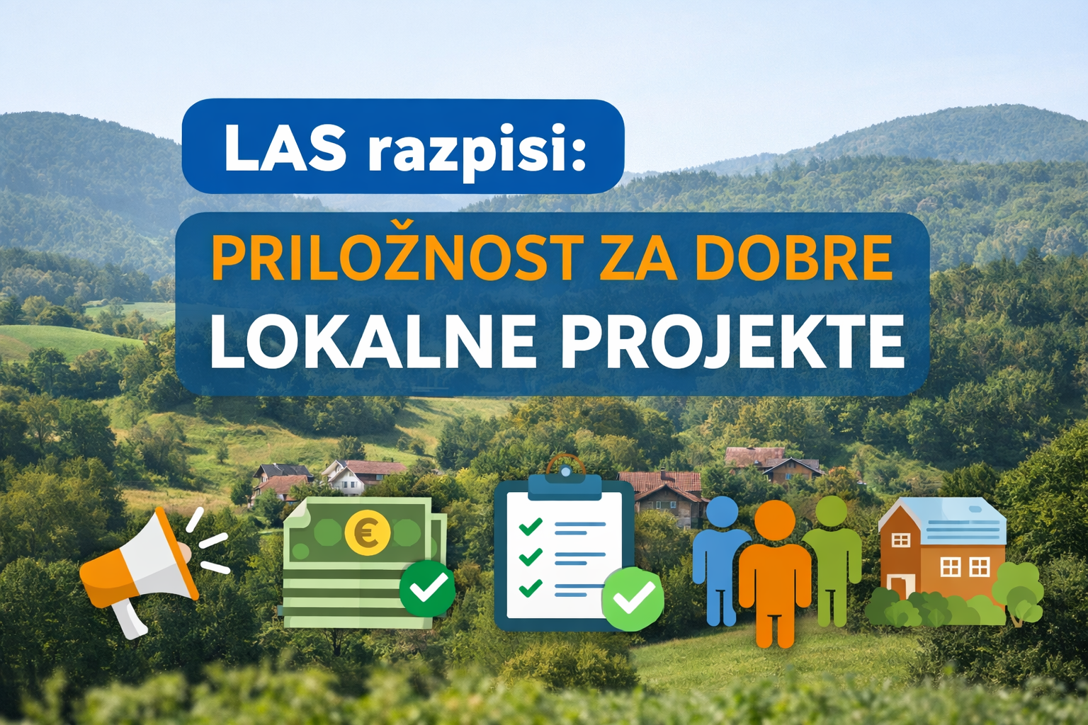 LAS pomeni lokalna akcijska skupina. To je partnerstvo občin, javnih zavodov, društev, podjetij, kmetij in drugih lokalnih deležnikov, ki skupaj pripravijo strategijo razvoja svojega območja. Nato se preko javnih pozivov izbirajo projekti, ki to strategijo uresničujejo v praksi. Zato LAS razpisi niso samo razdeljevanje sredstev, ampak orodje za razvoj krajev, storitev, sodelovanja in kakovosti življenja.